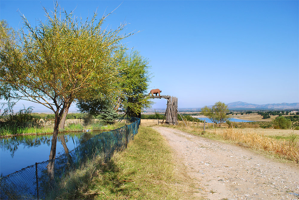 До тук може да се достигне и с автомобил. Минавам през парадният вход, вдясно на който има оформено езеро с водни лилии, и продължавам нагоре към къщите за настаняване. От паркинга се открива чудна панорама към язовир Сушица.