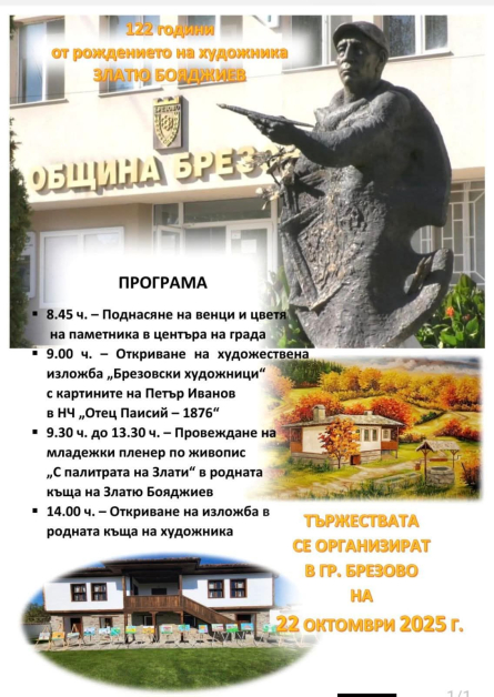 Брезово ще празнува 122 години от рождението на художника Златю Бояджиев.