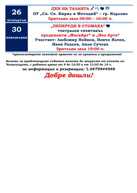 Вижте подробности за събитията в приложения афиш: