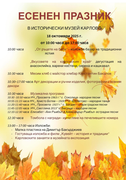 Есенен празник ще има в Историческия музей в Карлово. Събитието е на 18 октомври.