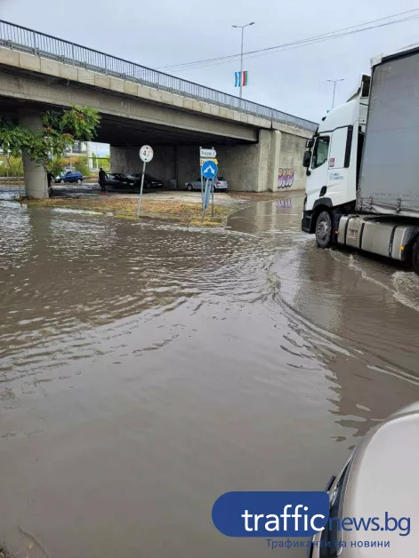 „Много от превозните средства се движат в насрещното, за да се измъкнат от водния капан. Преминава се предимно по тротоари и бордюри. Автобусът също премина през зелените площи, в посока града, но гумите затънаха. Забоксува и още повече се закопа. Повикаха още един автобус, за да изтегли авариралия. Работниците от района, като маймуни се катериха по оградите, няма къде да се стъпи”, разказа читател на TrafficNews.