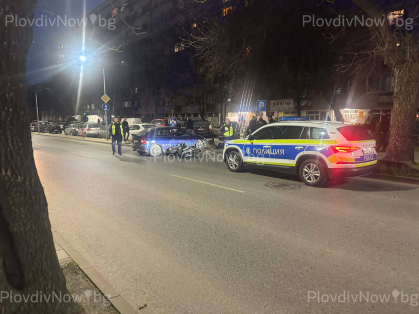 Шофьорът на автомобил Опел Астра се е движел в посока бул. "Мария Луиза". Тръгнал да прави ляв завой в локалния паркинг, а в обратната посока е идвал моторист, който се е ударил в колата.