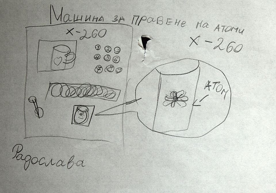Лазар - "Шлем за уроци в училище"; Радослава - "Машина за правене на атоми"; Неда Пандева - "Тениска, която прави хората добри"; Тодор Моллов - "Машина за правене на хората добри; Калина Маврова - "Начин, по който развалените продукти стават отново годни за ядене"; Руми - "Очила, чийто диоптър се променя автоматично според нуждите на носителя им"; Ния - "Вечна вода в шише"; Петър Петров - "Лодка, която се задейства с вода"; Галин Папазов, ОбУ "Хр. Ботев", обл. Пловдив - "Банка за бездомни с безплатни пари”.
