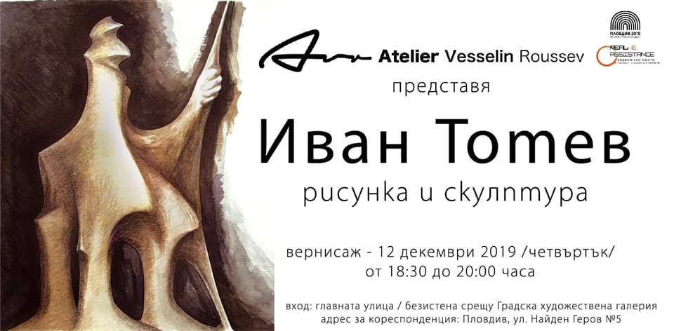 [ AVR ] Atelier Vesselin Roussev представя изложба на Иван Тотев - рисунка и скулптура. Откриването на експозицията е на 12 декември 2019 г. от 18:30 ч. в галерия AVR Atelier Vesselin Roussev, ул. Найден Геров 5.