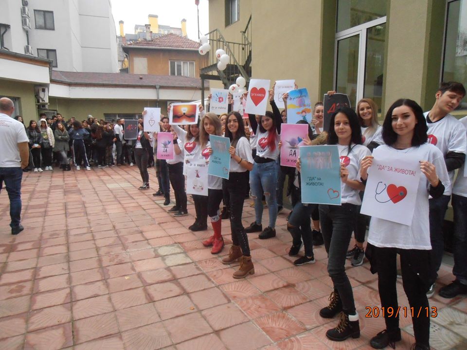 Всички гимназисти в знак на съпричастност с кампанията облякоха фланелките „Да! За живот!“ и информираха чрез брошури и поднесени по интересен начин факти своите съученици и съграждани за решенията, които спасяват човешки животи.