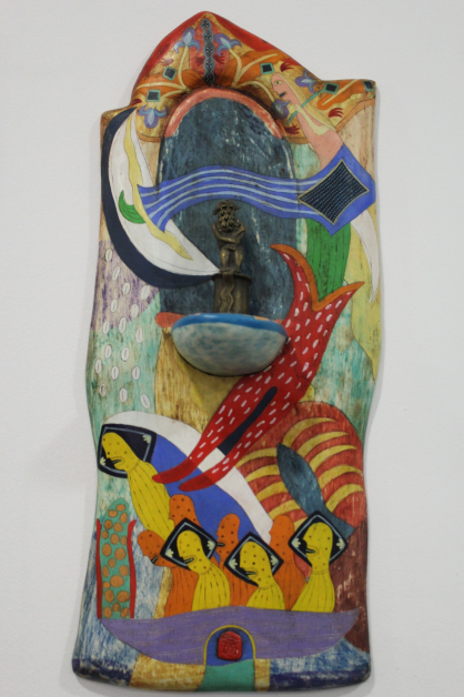 10. „Композиция“, акрилни бои на дърво, асамблаж с бронзова пластика, автор Атанас Хранов