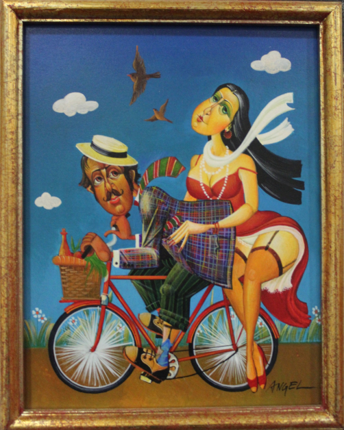 5. „Двама на велосипед“, акрилни бои на платно, автор Ангел Василев,