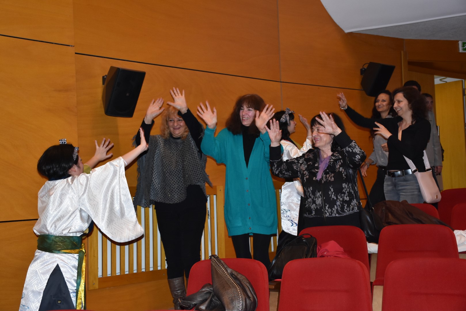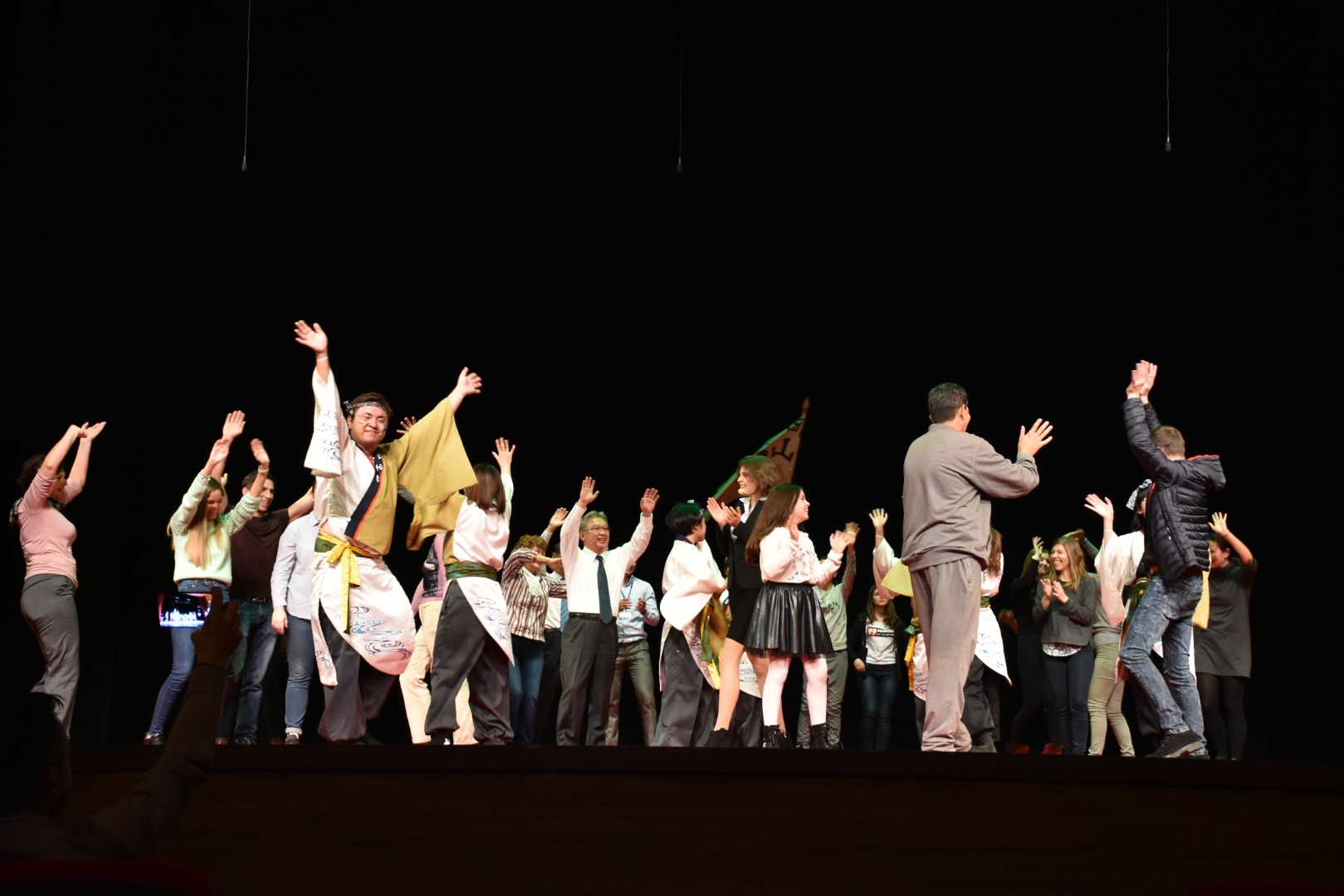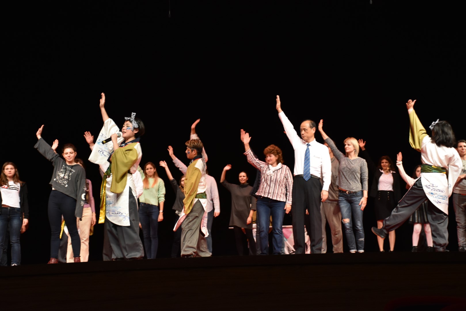 Истинска изненада за хората в залата беше изпълнението на детската песничка "Над смълчаните полета" от японската трупа.