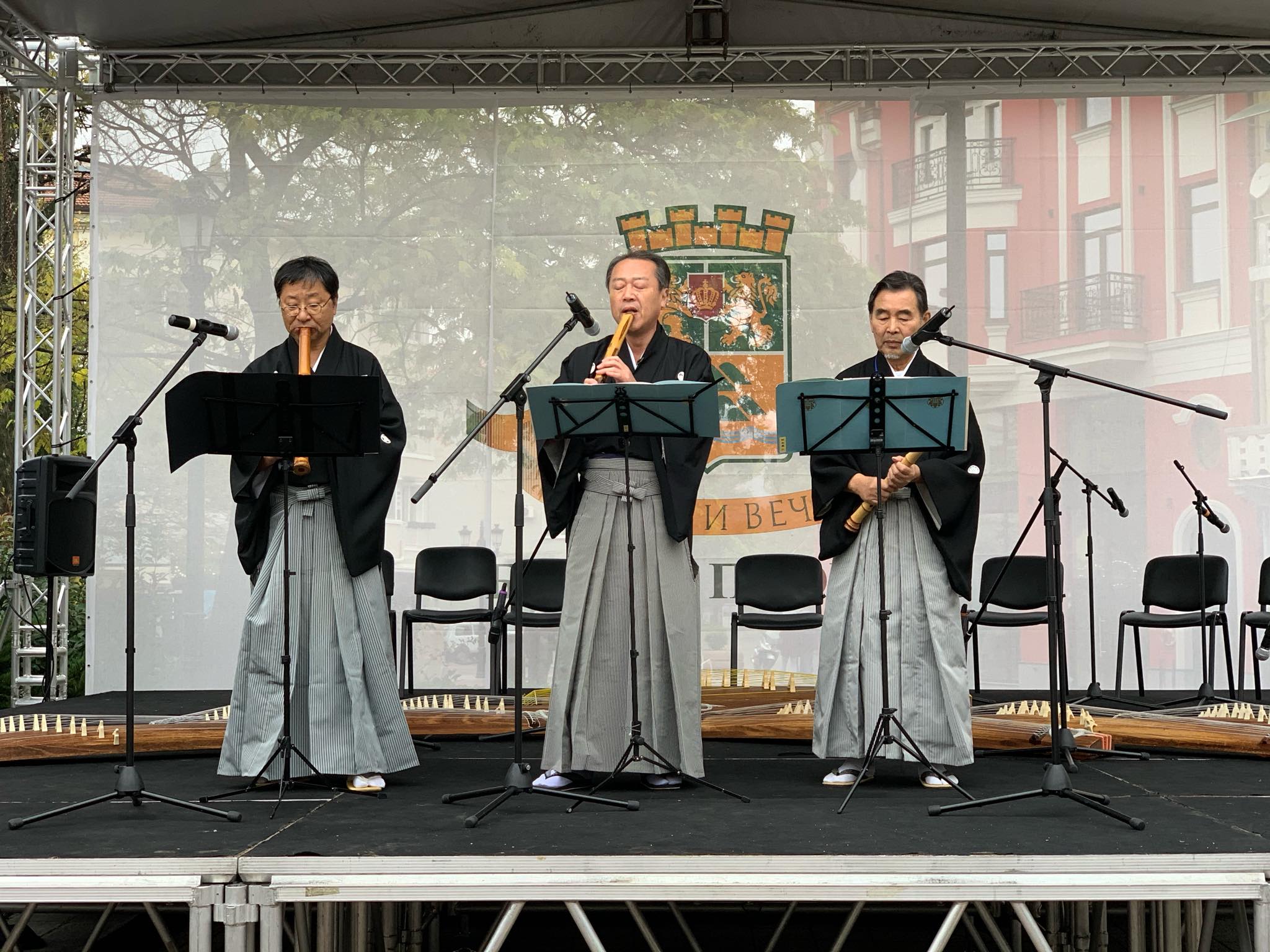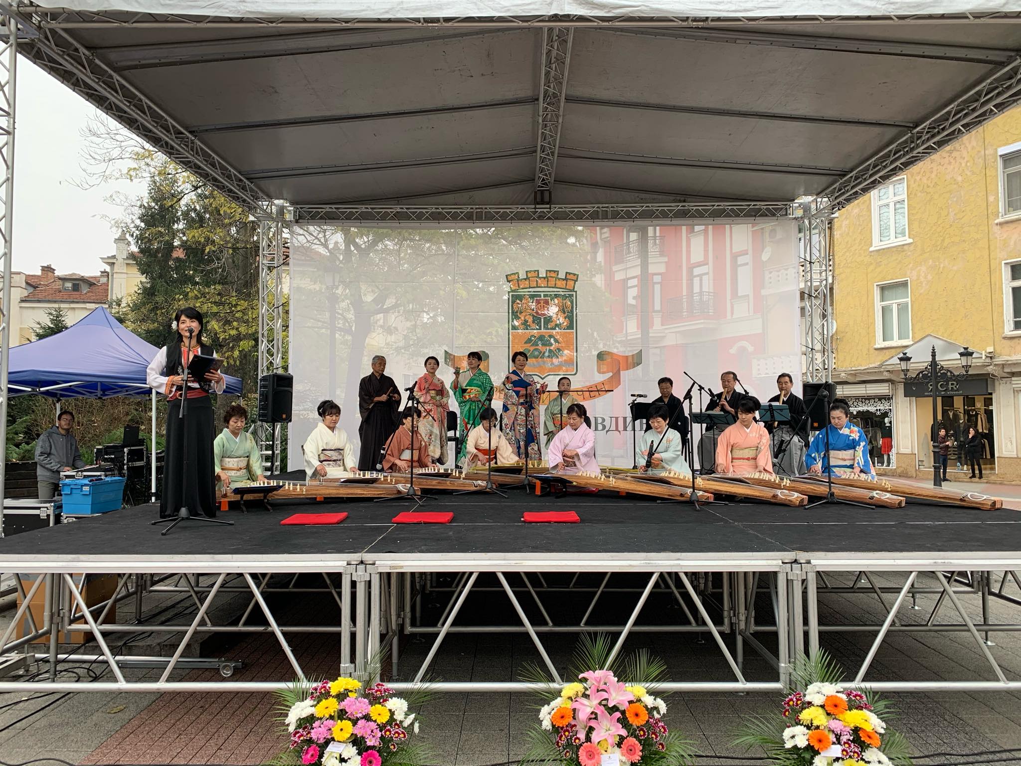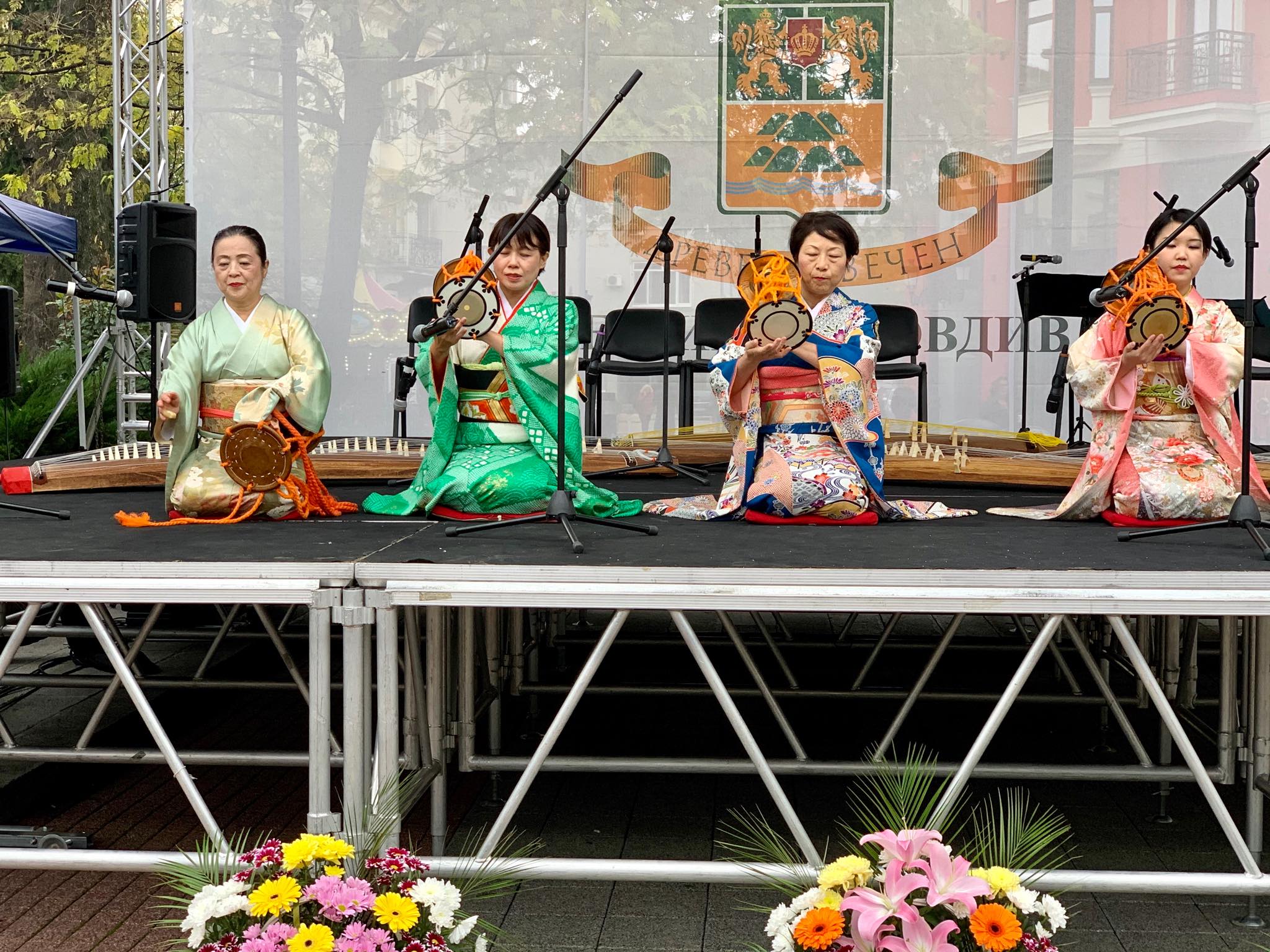 Днес от 11.00 часа на откритата сцена пред Община Пловдив пловдивчани и гостите на града отново имаха възможност да се насладят на японското музикално и танцово изкуство на специално даден за тях едночасов концерт.