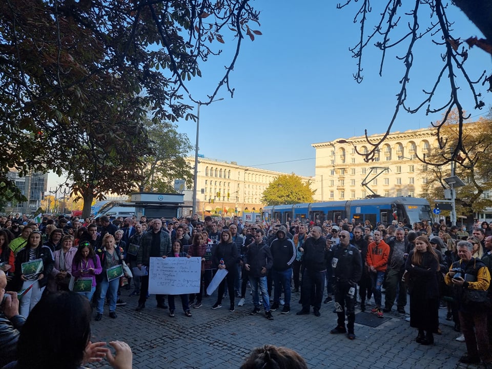 Недоволните изгориха зелен сертификат пред сградата и поискаха оставката на здравния министър. Самият той е излязъл през задния изход на ведомството малко по-рано.