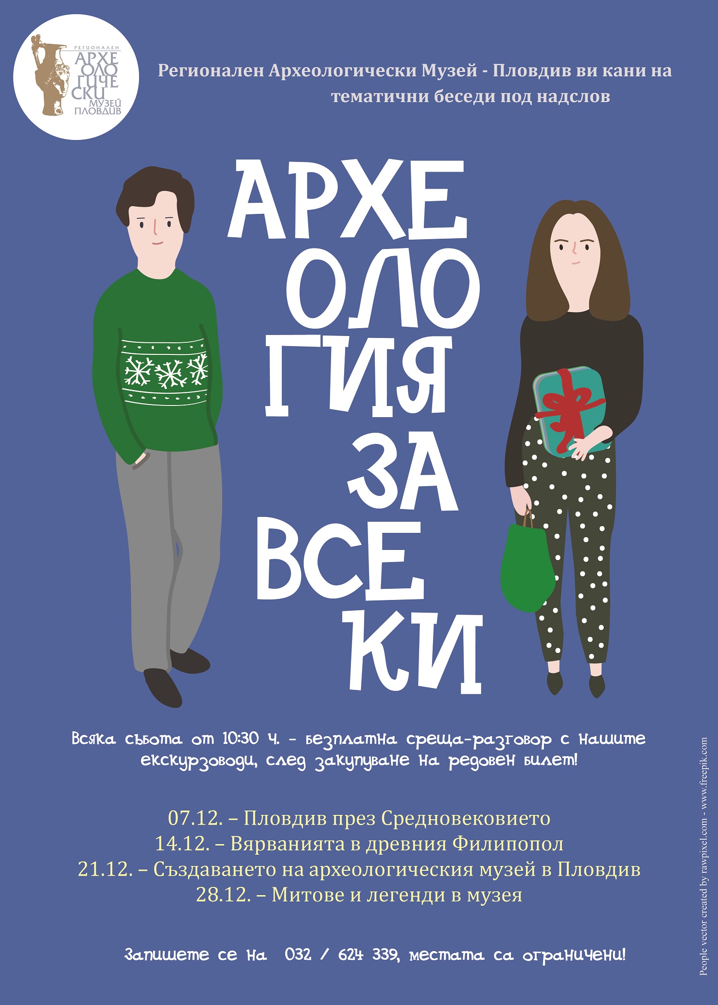 От април 2019 г. Регионален археологически музей – Пловдив, стартира инициатива за безплатни беседи, под надслов „Археология за всеки“. Беседите са пътешествие през историята, културата, археологията на Пловдив и пловдивския край; разказ за съкровищата, които се съхраняват във фондовете и архивите на музея; за малко познатите или непознати артефакти, свързани с историята ни, и достъпен пътеводител в миналото на града ни и музея като един от носителите и пазителите на културно-историческото ни наследство и памет.