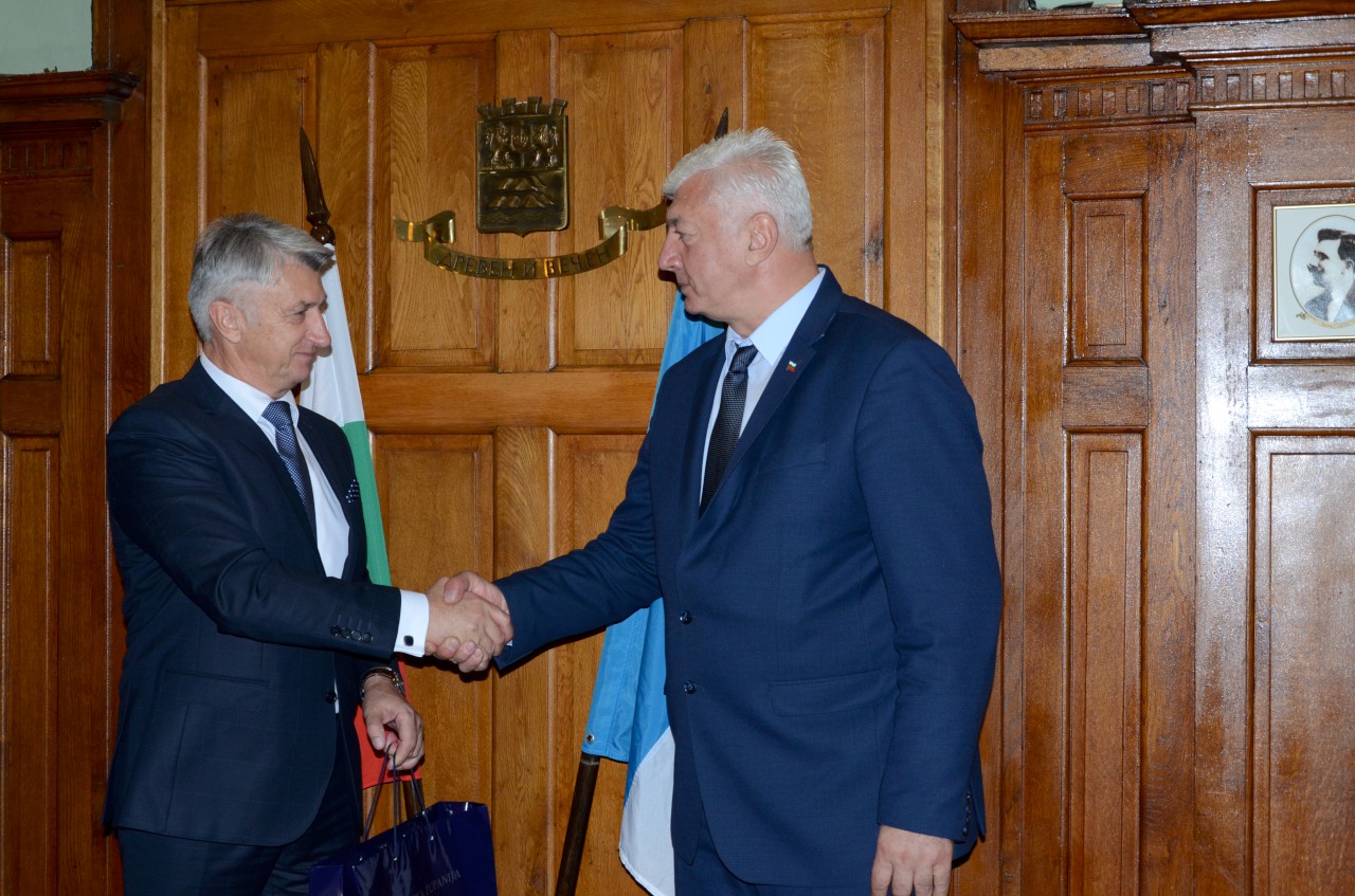 „Най-бързото сближаване между градовете става през бизнеса, после през културата и образованието. Определено двата града имаме опорни точки“. Това заяви кметът Здравко Димитров в приветствието си към официалната делегация от хърватския град Задар, водена от областния управител Божидар Лонгин. Представители на бизнеса от различни сфери на дейност – търговия, промишленост, производство на алкохол, директорите на пристанището и на летището на Задар са на тридневно официално посещение в България, като освен столицата София те са в града под тепетата, където проведоха редица срещи и разгледаха основните туристически места – Римския стадион, Античния театър, къщите в Стария град Клианти, Балабанова, Хиндлиян.