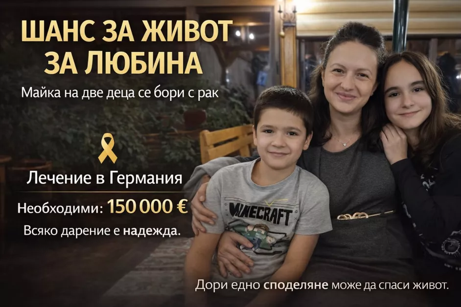 40-годишна майка от Пловдив се бори за живота си и търси подкрепа, за да продължи лечението си в чужбина. Любина Спасова има нужда от около 150 000 евро, за да получи шанс за терапия в клиника в Висбаден.