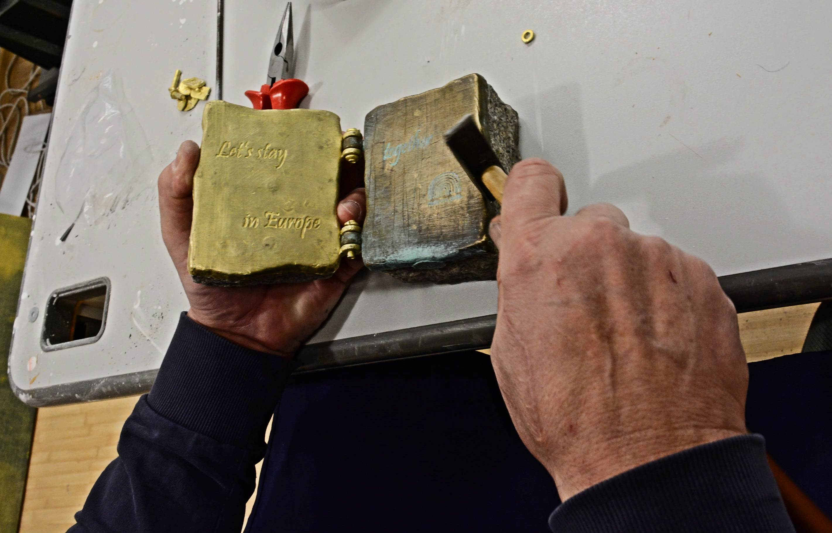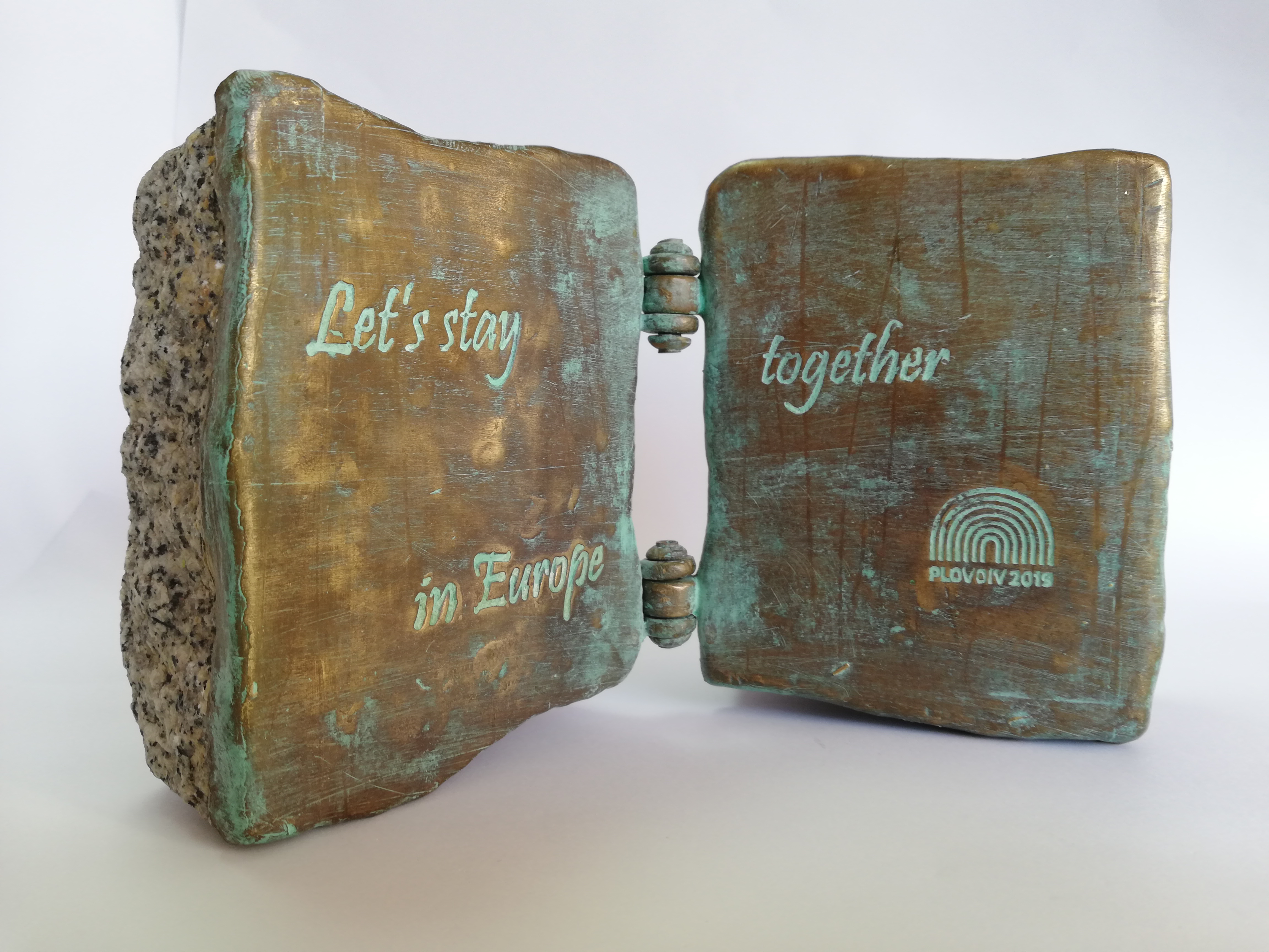 Изработката на символа е дело на именития пловдивски художник Атанас Хранов и представлява парче от историята от града, част от седмото тепе. За автора парчето сиенитна скала е запечатало не само хилядолетието на града, но и историята за разрушаването на хълма и засипването на улиците в града с множеството павета, изработени от него. „Тук са следите от стъпките на стотици граждани, политици, артисти и общественици, оставили своя непреходен отпечатък върху българската и световна култура“, споделя още той. Фигурата символизира още разтворена книга, в която е поместено и посланието.