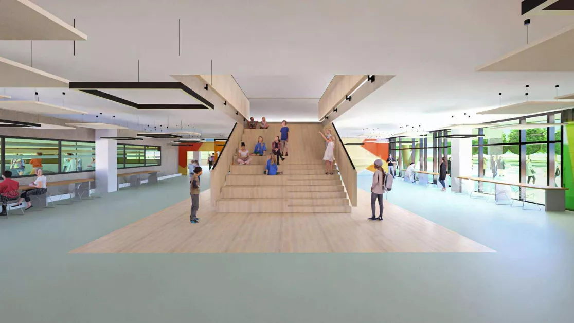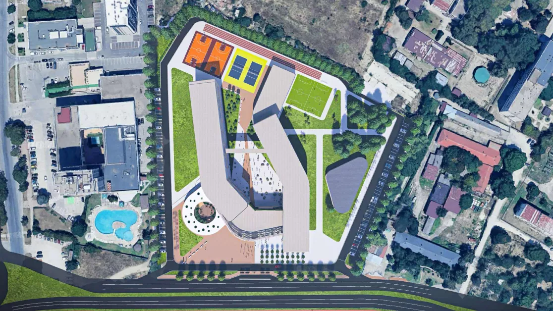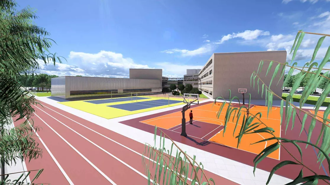 Спортната част на комплекса също е впечатляваща – два физкултурни салона, фитнес, зала за хореография, многофункционална зала и басейн, а на открито ще има футболни, баскетболни и волейболни игрища, както и лекoатлетическа писта.