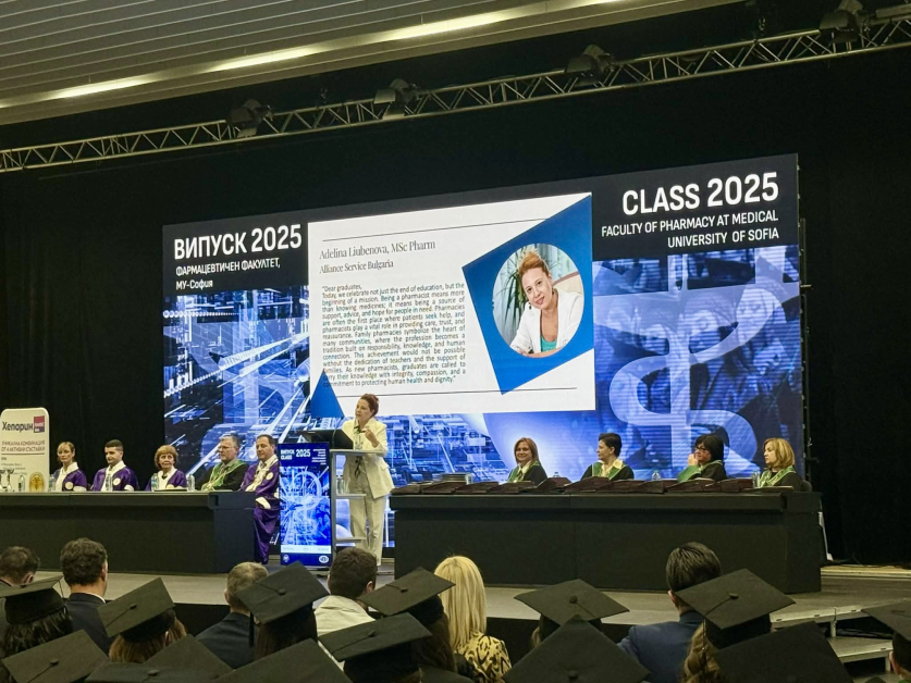 Сред официалните гости на събитието беше и Аделина Любенова от името на обединението на семейните аптеки „Алианс Сървиз“, която поздрави дипломантите и отправи послание към тях за ролята на фармацевтичната грижа и значението на семейните аптеки в здравната система.