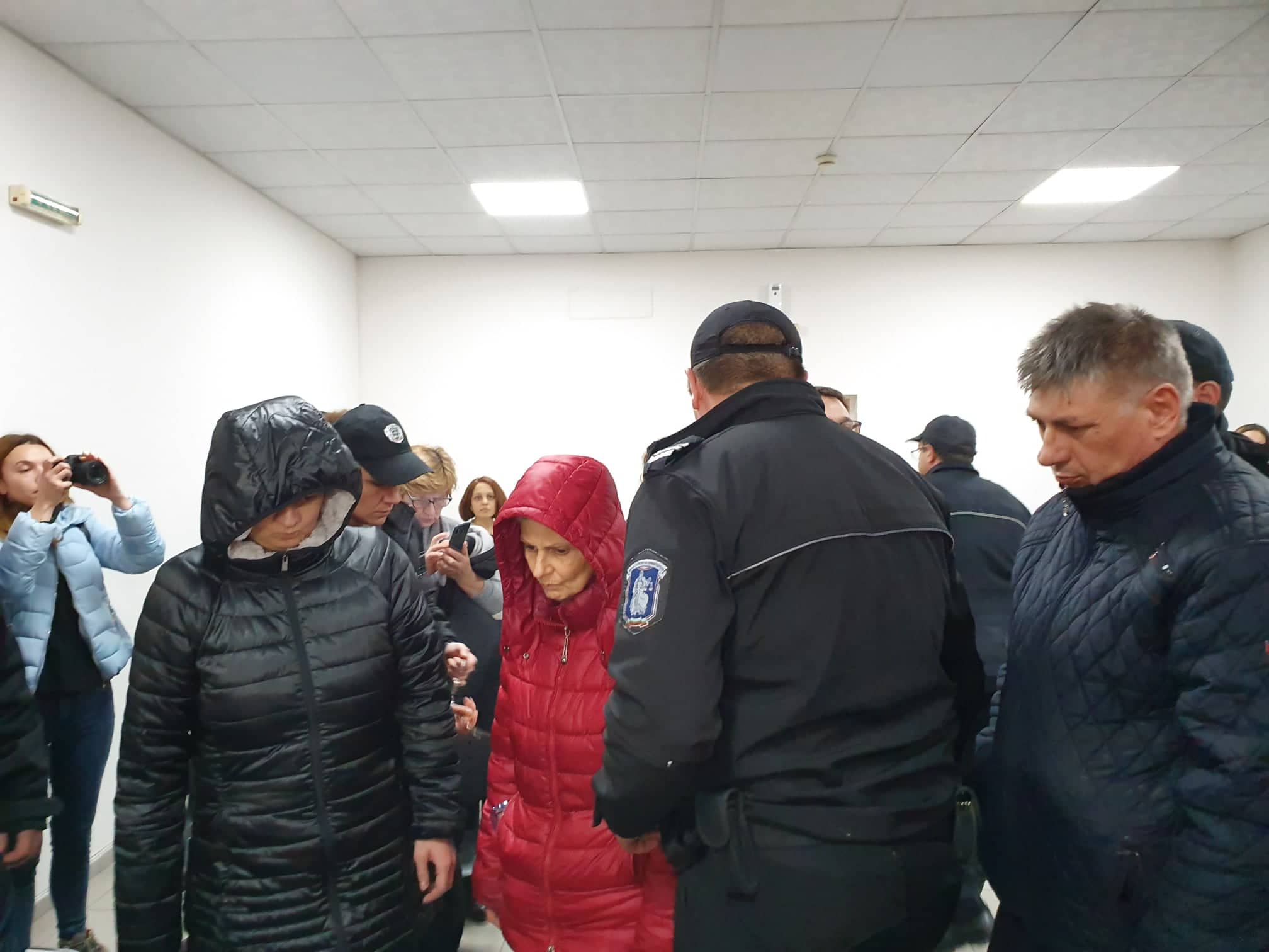 Бившата служителка на НОИ Александрина Георгиева, дъщеря й Николина Георгиева и Лазар Лазаров влязоха с качулка в съдебната зала в Пловдив. Тримата са обвинени, че са замесени в схема, с която за източили 3 млн. лева от НОИ.