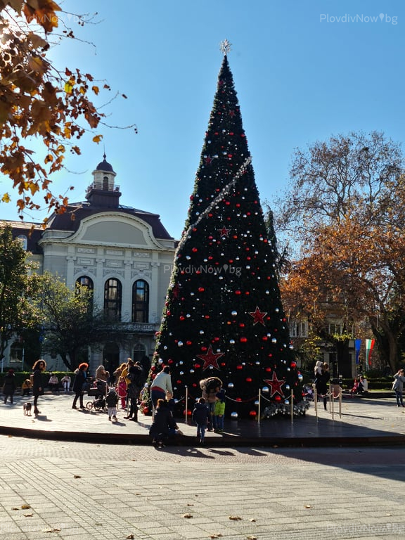 Главната улица и продължението й "Райко Даскалов" гъмжат от разхождащи се хора, които се радват на есенното слънце. Не липсват и майки с деца. Някои от тях са наобиколили елхата пред Общината, защото малчуганите се радват на коледната украса.