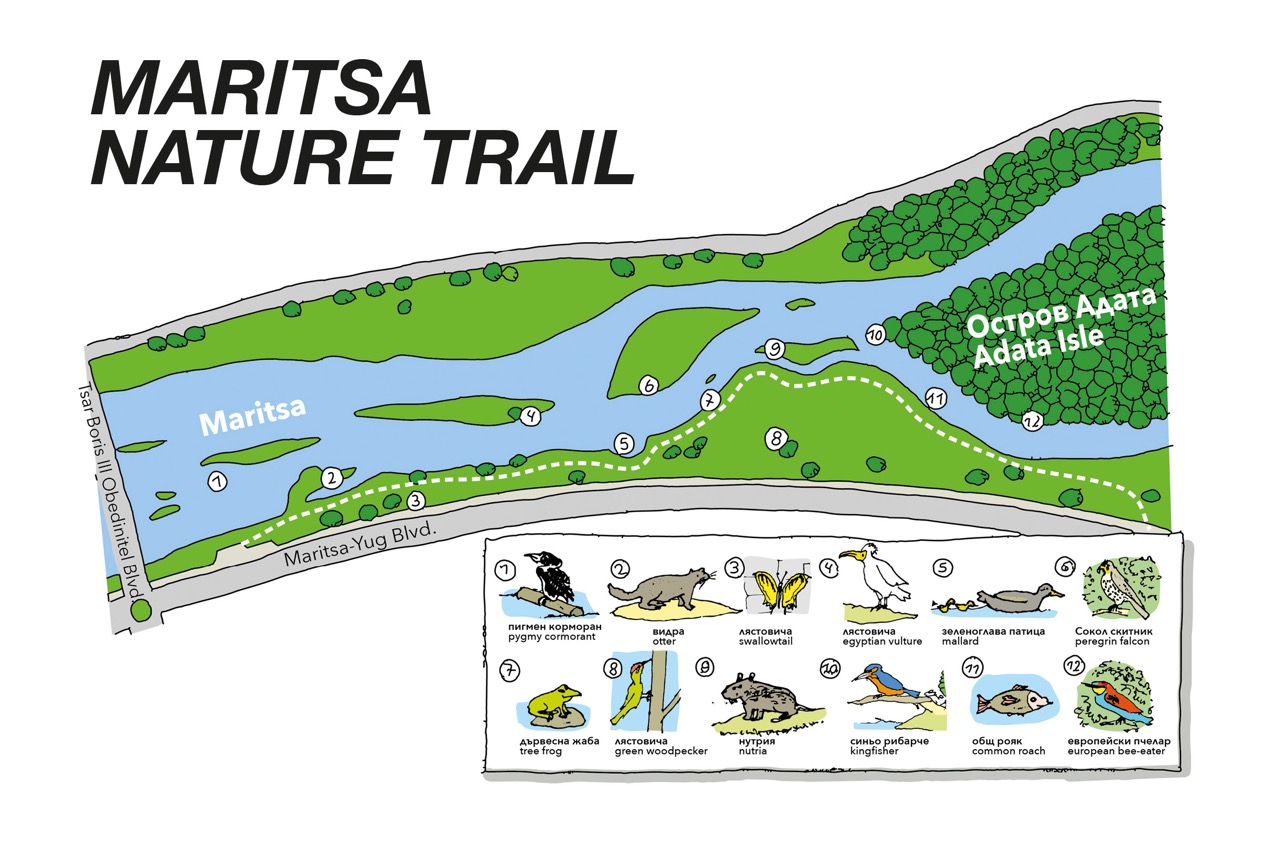 В своята версия на природна пътека Матиас Гарф пресъздава биоразнообразието на реката в цветни скулптурни обекти , разположени по крайречната алея, представящи отличителните за района на Марица животински обитатели. Всички те са изработени от отпадъци, събрани от коритото на реката. В деня на откриването авторът сам ще разкаже за работата си и избраните птици, насекоми, земноводни и бозайници, а в петък, на 8 ноември, от 3 следобед е планирана специализирана разходка, ръководена от Българско дружество за защита на птиците, с чието партньорство е подготвен художественият проект. Сборен пункт и начална точка и в двете срещи е бетонната платформа срещу Водната палата, покрай която скулптурите ще могат да бъдат наблюдавани до 10 ноември.