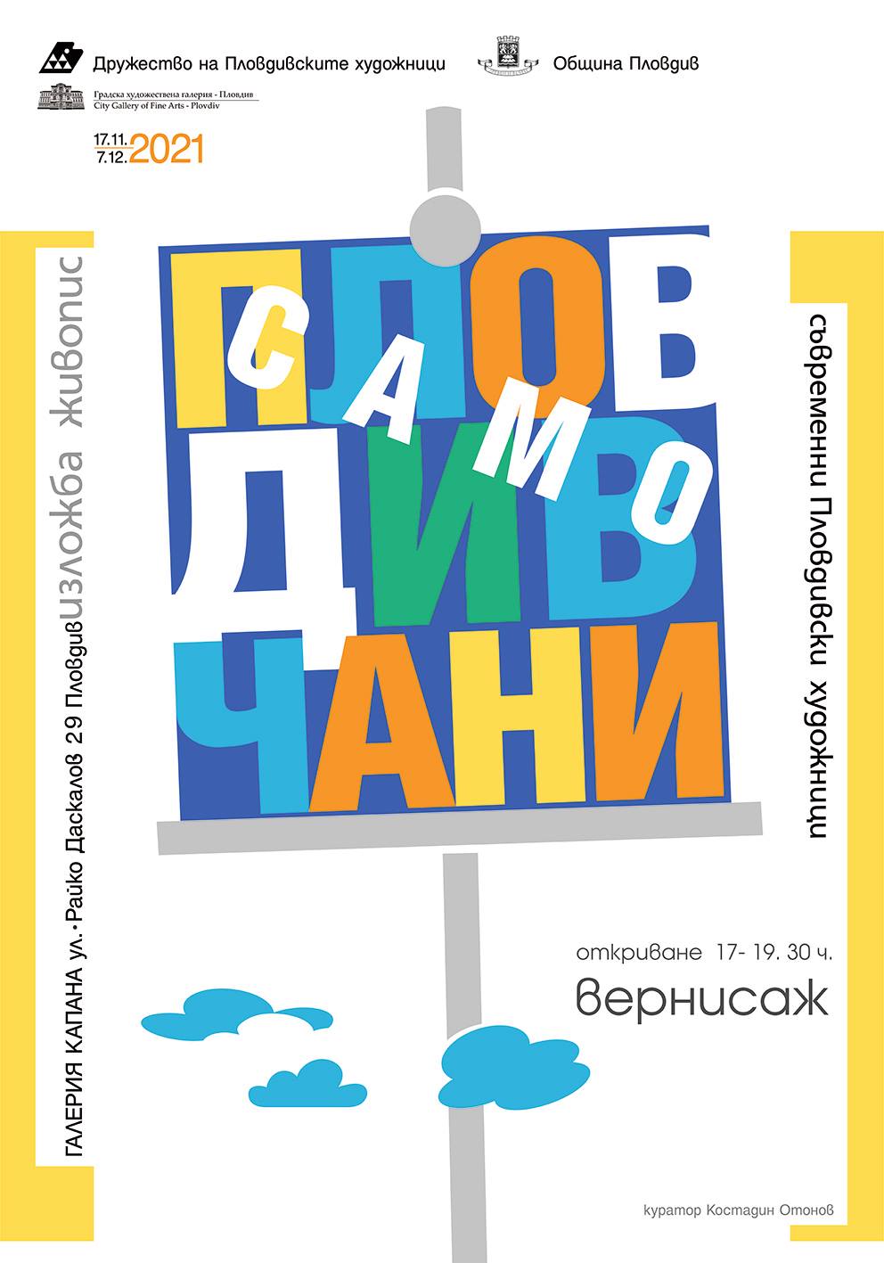 С вернисаж от 17:00 до 19:30 ч. на 17 ноември в галерия „Капана“ ще се открие изложбата "Само пловдивчани"- част от многогодишен кураторски проект на Костадин Отонов съвместно с Дружеството на пловдивските художници.