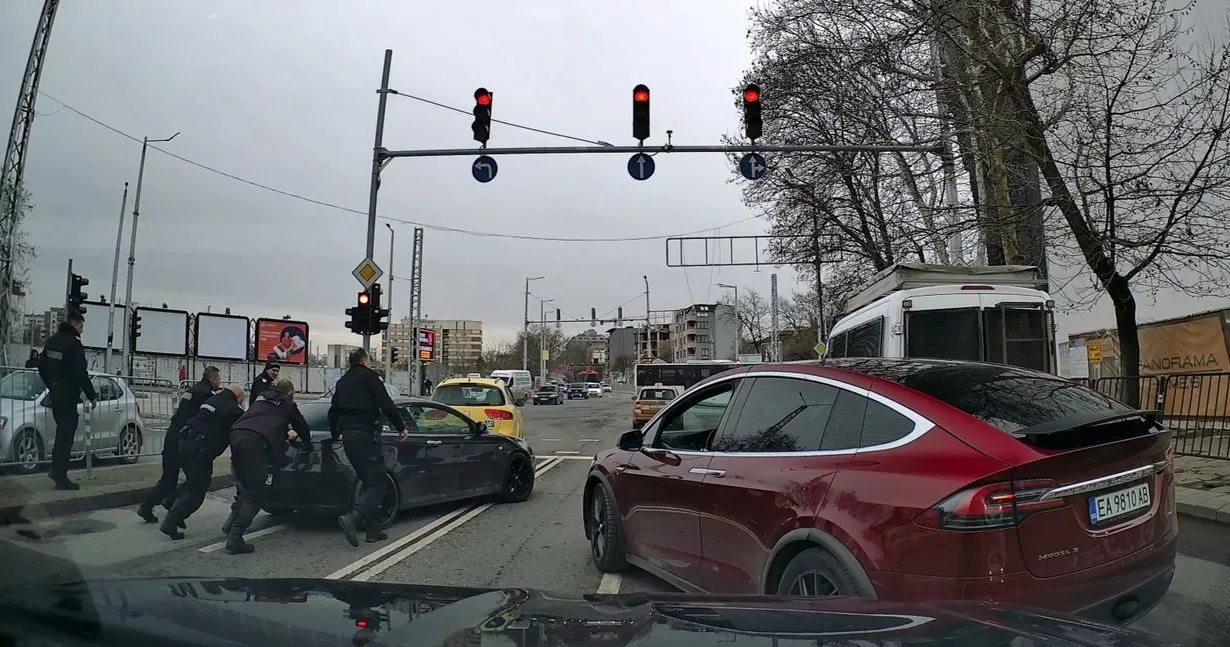 Пловдивски жандармеристи се притекоха на помощ на закъсал водач на едно от най-оживените кръстовища в града. На любопитната ситуация се натъкнал Живко Георгиев, който се оказал непосредствено зад авариралия автомобил.