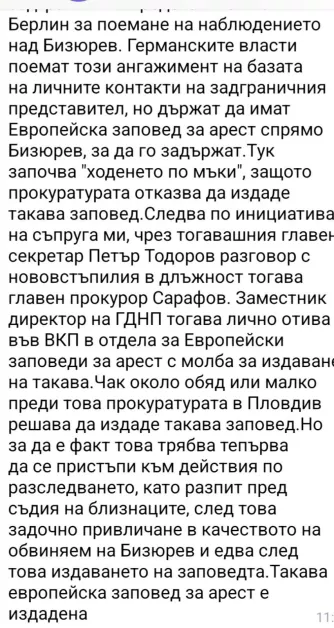 Самата г-жа Костадинова не знае или удобно пропуска факта, че германските служби са изпратили протестна нота до МВР , в която са изразили недовоството си от неадекватната намеса на пловдивската полиция, която е позволила на Рангел Бизюрев да напусне жилището си и да избяга. След което той се укрива близо година, преди да бъде задържан в Дания.